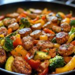 Next up, let’s prep our chicken sausage and veggies. Slice your chicken sausage into bite-sized pieces. I like them around 1-inch thick; that way, they cook evenly and get that lovely brown color. Now, grab your mixed vegetables—give those bell peppers, zucchini, and broccoli a good chop! Aim for similar sizes to ensure they cook at the same rate. The more uniform, the better! Once you’ve got everything prepped, give it a good mix in a bowl to combine those flavors.